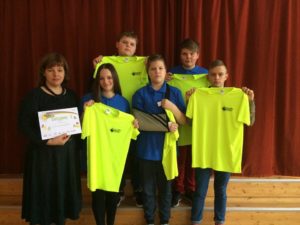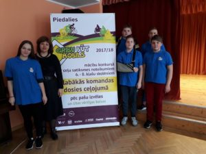 Brocēnu vidusskolas komanda “”Ašie velobraucēji” (Klāvs Valteris, Ralfs Stūris, Kristers Buls, Andris Šteins, Nora Grisane), Ksenija Sanduļaka un sk.Anete Milta rāda savas zināšanas un prasmes ceļu satiksmes noteikumos un satiksmes drošībā konkursa “Gribu būt mobils!” pusfinālā Kuldīgā.